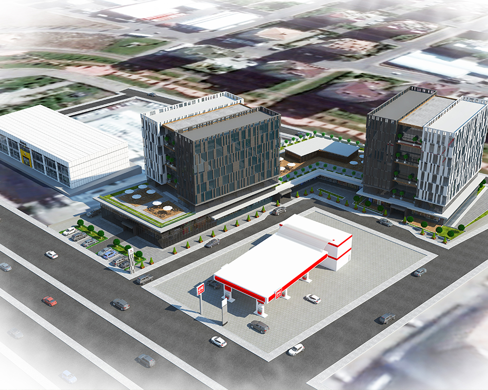 İşin Tanımı: Diyarbakır’ın en işlek caddelerinden biri olan Urfa Yolu üzerinde, Özkılıç Motorlu Araçlar ve akaryakıt istasyonunun yanında konumlanan proje; toplam 22.258 m² alan üzerine kurulu 2 blok ve 80 adet farklı metrekarede ofisten oluşmaktadır. Modern mimari anlayışla tasarlanan bina, aynı çizgiyi ofis içlerinde de sürdürmektedir.